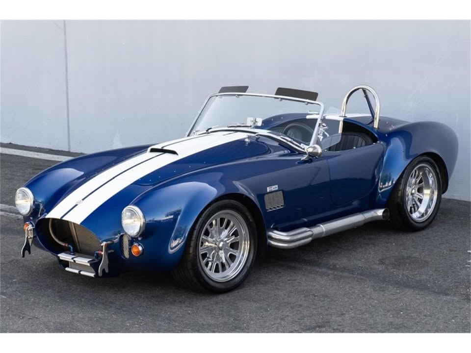 1965 Superformance MKIII Cobra – Coyote-Powered Shelby Legend Blending iconic 1960s design with modern American muscle, this 1965 Superformance MKIII Cobra (Chassis SP02518) is a roadster that thrills with every turn of the key. Finished in royal blue with bold white stripes, this officially licensed Shelby continuation car combines period-correct craftsmanship with today’s engineering and reliability. Powered by a Ford Gen 1 5.0L “Coyote” V8 producing 420 horsepower and 390 lb-ft of torque, the car delivers fierce performance through a Tremec TKO 5-speed manual transmission and independent rear suspension. Ceramic-coated headers and side pipes add performance flair, while safety enhancements like Wilwood 4-piston disc brakes, Bilstein coilovers, and sway bars ensure confident handling. Every detail is thoughtfully executed—from the chrome roll bar and quick jacks to the leather-wrapped steering wheel and Smiths instrumentation. With only 3,502 miles, this roadster represents a rare opportunity to own a modern classic, backed by Carroll Shelby Licensing.